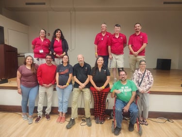 back: old officers; Mary Lynn Bransford, Margarita Garcia, Ted Dressler (standing below), Susan Haley (standing below) Richard Pearson, Roy DeHaven & Emilio Garcia