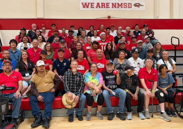 front: new officers: Myra Sandoval, President; Tommy Tischler, Vice President; Rosina Garcia, Secretary; Ted Dressler, Treasurer; Members at Large: Emilio Garcia (standing above Anna), Susan Haley & Aaron Martinez; Anna Marie Ortiz, 2030 Reunion Chair;