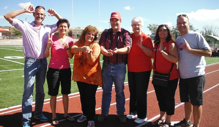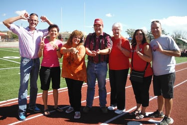 l to r: Diego Gonzales, President; Corina Gutiérrez, Vice President; Monica (Rodriquez) Huerta-Carteya, Secretary; Ken Litherland, Treasurer; Members at Large: Faye Falvey, Margarita Garcia & Jim Vigil